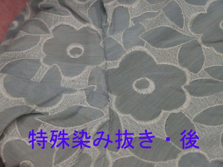特殊しみ抜きで、できるだけ黄みを除去し、残った黄色の反対色の染料を入れて
