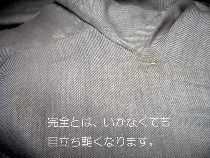 *その他として、男性物スラックス・又の部分のシミですが・・・完璧に落とすことはできませんが、