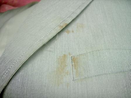 *一般に酸化・黄変ジミと、呼ばれるものです。(クリーニング屋さんで、無理ですよと、言われる物です。