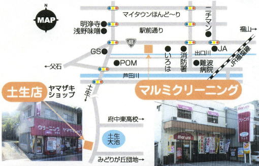 (有)マルミクリーニング 広島県府中市府中町123 0847−41−3245(FAX兼用)